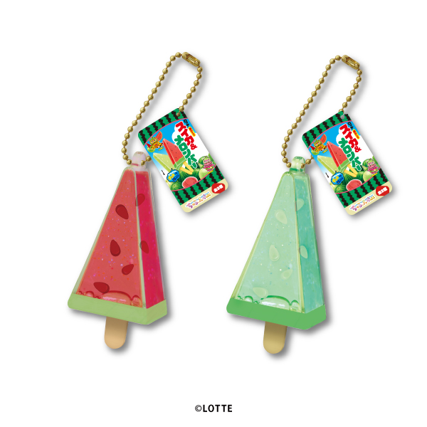 大人気アイス『スイカ&メロンバー』のちゅるぷかチャームがプライズで登場!キラキラのラメが入った色鮮やかなオイルがとてもかわいい♪(全2種)