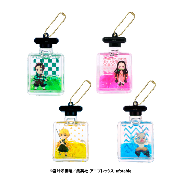 アニメ「鬼滅の刃」のちゅるぷかチャームがプライズで登場!オイルの中に、おなじみのキャラクターのアクリルパーツが入っています!キラキラのラメがポイントです!(全4種