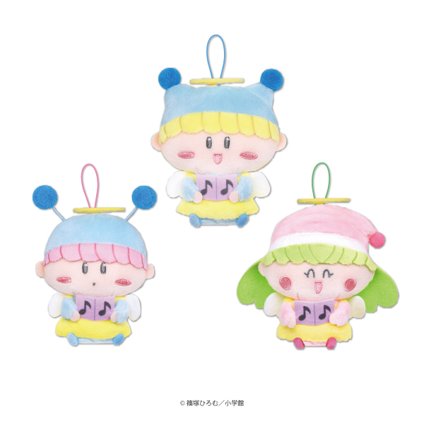 平成女児人気作品『ミルモでポン!』のマスコットぬいぐるみ~聖歌隊~がプライズで登場!天使の輪や羽つきの、原作イラストを再現♪便利なゴムひも付き。(全3種)