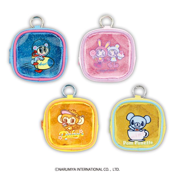 | 商品説明 | 『ナルミヤキャラクターズ』の窓つきスクエアポーチがプライズに登場!中身が見えるクリア仕様!表面はキラキラのラメ加工入りでとってもキュート!リング付きなのでバッグなどに付けて一緒にお出かけできます♪(全4種) |