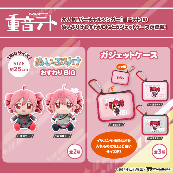 大人気バーチャルシンガー『重音テト』の 「ぬいぷりけおすわりBIG」「ガジェットケース」がプライズに登場!