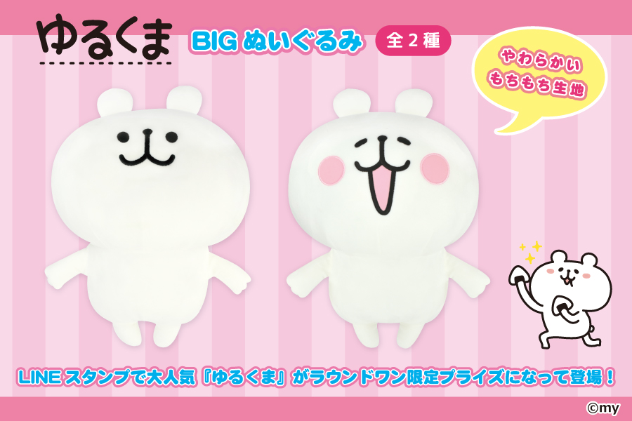 LINEスタンプで大人気『ゆるくま』がラウンドワンアミューズメント限定プライズで登場です!