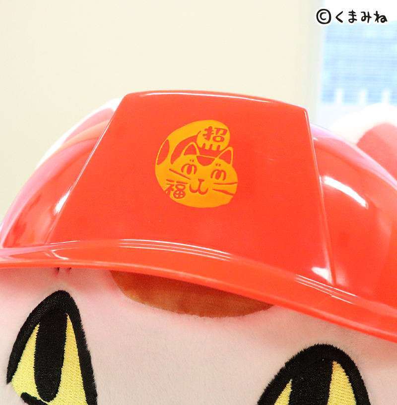 赤いヘルメットには可愛い「招福」のロゴがプリントされています!