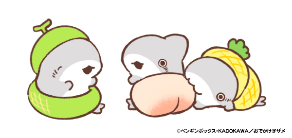 大人気作品『おでかけ子ザメ』に登場する「ベビー子ザメ」がフルーツ姿のぬいぐるみになって登場です!