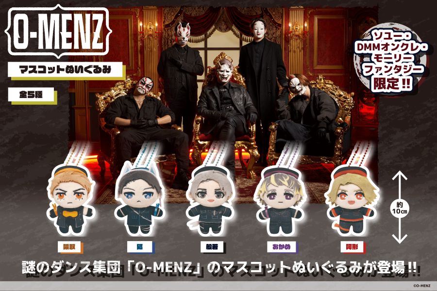 謎のダンスお面集団「O-MENZ」のマスコットぬいぐるみが、ソユー・DMMオンクレ・モーリーファンタジー限定プライズで登場します!