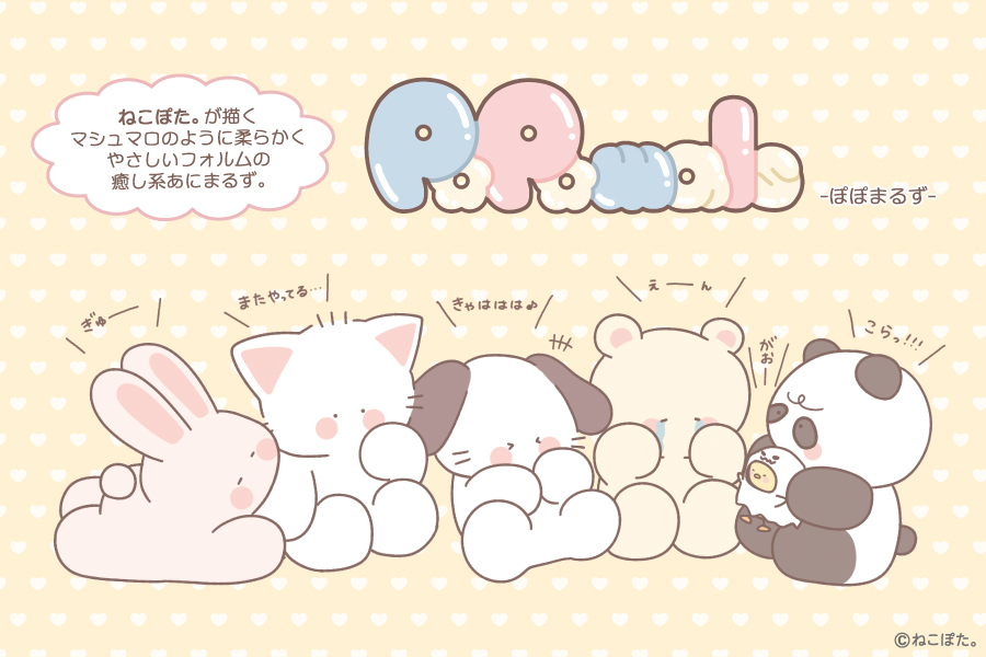大人気イラストレーター『ねこぽた。』が描く『PoPomals(ぽぽまるず)』ふわふわマスコットぬいぐるみが登場!