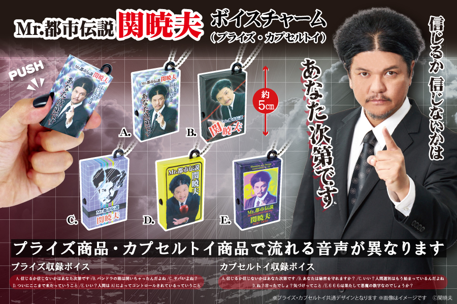 Mr.都市伝説 関暁夫のおなじみのセリフを使用したボイスチャームがプライス・カプセルトイに登場!