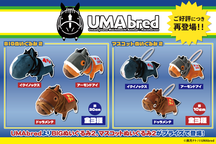 『UMAbred』のBIGぬいぐるみ2とマスコットぬいぐるみ2が再登場!