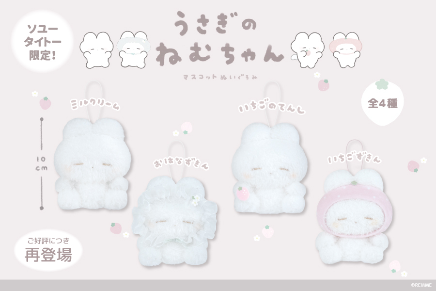 大人気ぬいぐるみ作家REMMEによる『うさぎのねむちゃん』のマスコットぬいぐるみが、プライズで再登場です!