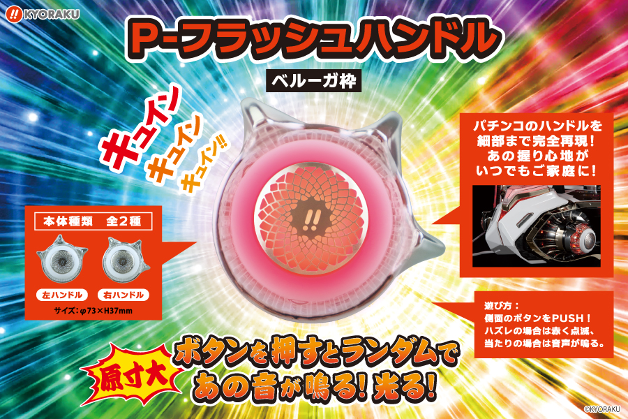 KYORAKUのパチンコ筐体「ベルーガ枠」の 『P-フラッシュハンドル』がプライズに登場!
