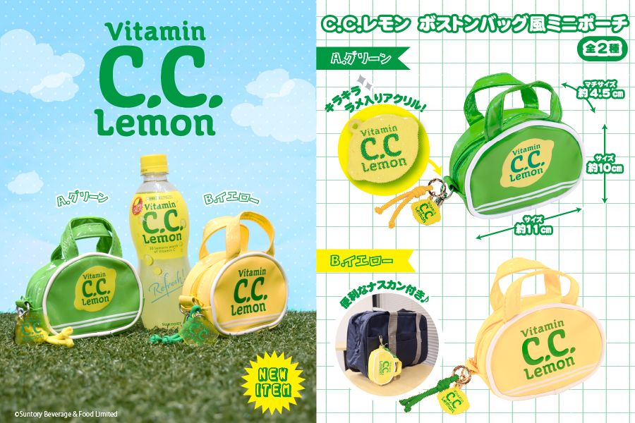 大人気飲料『C.C.レモン』のボストンバッグ風ミニポーチがプライズに登場!