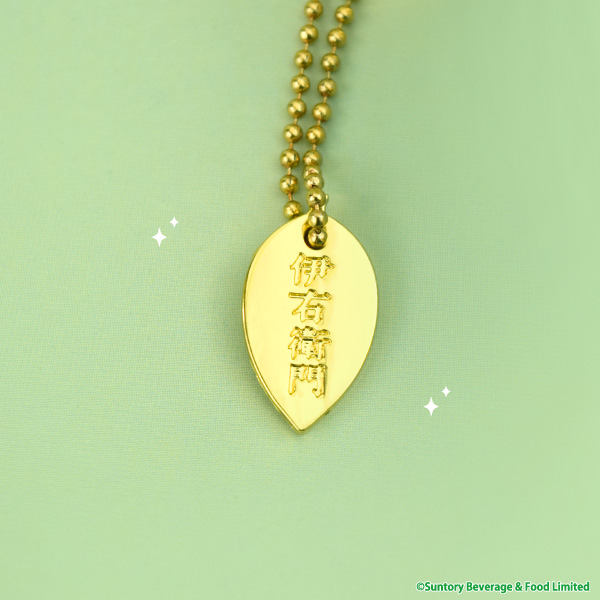 茶葉型のゴールドチャームに伊右衛門のロゴが入っています🍃✨