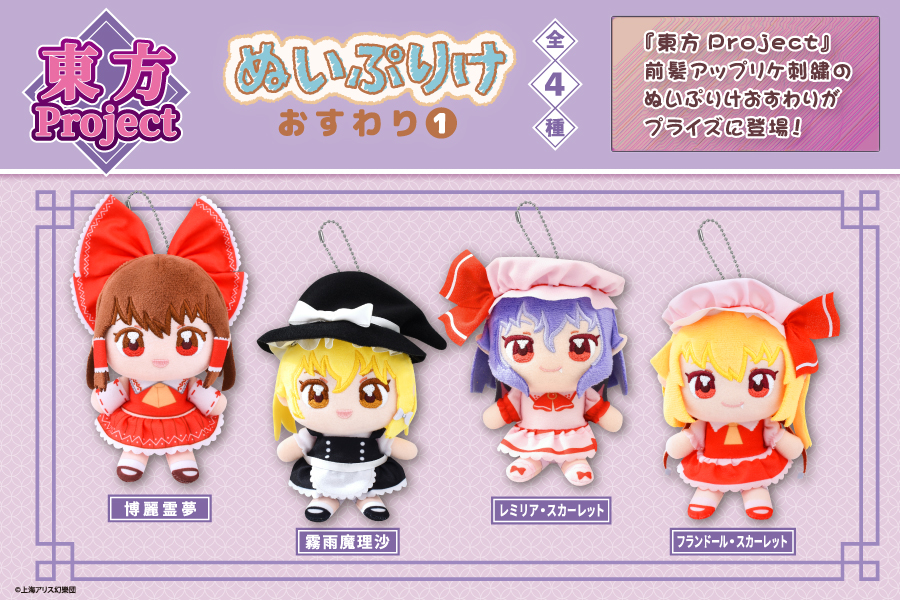 「東方Project」シリーズのぬいぷりけおすわり第1弾がプライズで登場です!